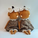 The Cottage Pumpkins have wandered in from the patch, dressed in bubble dresses, bloomers, and scalloped collars. Each heirloom doll is adorned with a fluffy ruffle around the stem, bringing a touch of gentle charm to your collection.