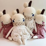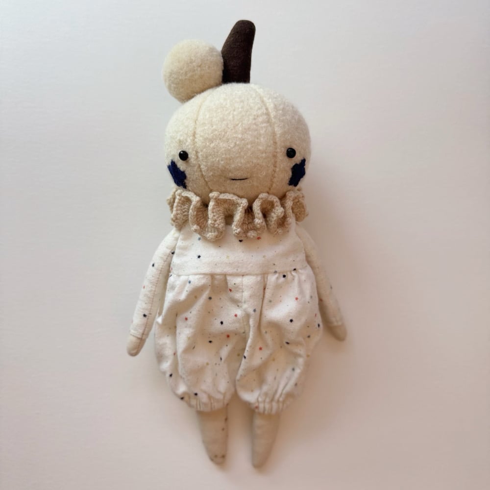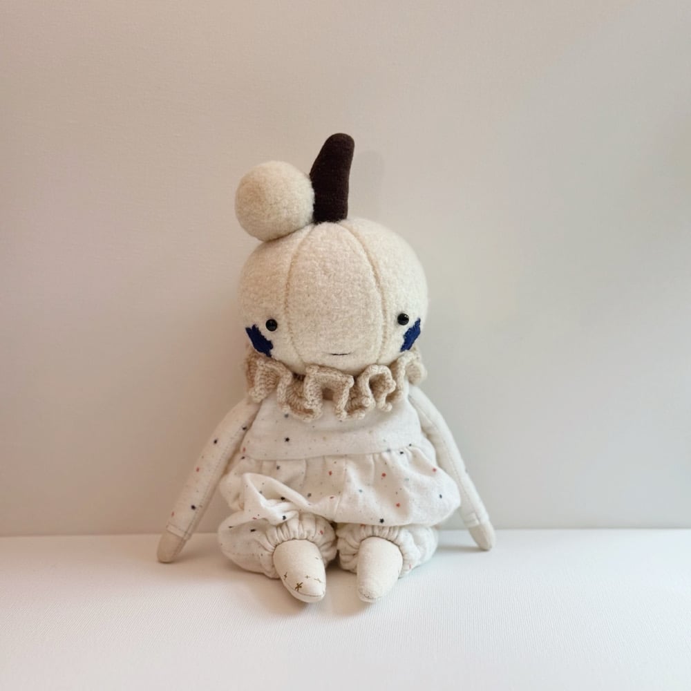 Step right up! The Pumpkin Clowns have tumbled in from the patch, dressed in billowy dungarees, ruffled collars, and woolly pompoms. Each heirloom doll is adorned with playful details, crafted to delight collectors with their spirited charm.